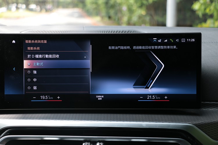 ▲放開踏板時的電能回收力道可進入選單內自行調整。