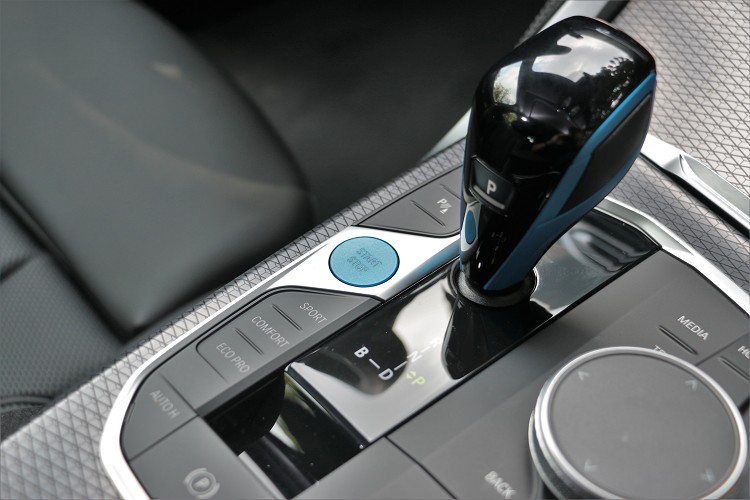 ▲鞍座區域可以發現以BMW i車款專屬藍色點綴的啟動鈕、排檔桿。