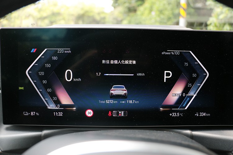 行駛於一般道路上,BMW i4散發著一股優雅,聽不到內燃機引擎作動的吵雜聲,迴盪在耳邊的只有IconicSounds Electric虛擬聲浪,隨著電門深淺會自動挑整大小聲。車室內的靜音工程還算不錯,只有在高速巡航時,玻璃會有些許風切聲;懸吊阻尼兼顧支撐性又具備舒適性,長時間行駛也不會感到不適。BMW i4的使用邏輯已經非常接近油車,只有幾個小地方要習慣,像是踩下煞車按下啟動鈕,不會有引擎啟動聲,但車輛已準備好可以行駛;另外,當你只是臨時開門,只要駕駛座車門開啟,車輛就會自動關閉系統,想要再繼續行駛,就必須重新踩煞車、按啟動鈕,對於要時常下車拍照的編輯們,這點就很不習慣。