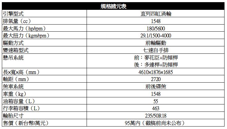 常用速域輸出順 瞬時與中段加速反應較弱1.5T車型搭載來自上汽藍芯2.0 MEGA Tech動力科技的1.5升汽油渦輪引擎,動力輸出數據為最大馬力:180hp/5600rpm、最大扭力:29.1kgm/1500-4000rpm最大扭力,搭配七速雙離合器自手排變速箱。起步與中低速的時候其實油門反應還蠻快,給人的加速感是平順甚至是有點輕快,在常用速域下算是蠻好開的,也會感覺比RAV4或Kuga等對手有力一些。