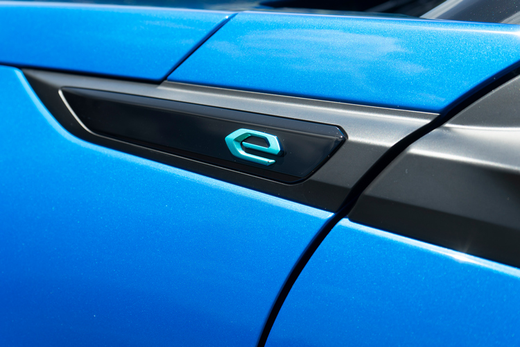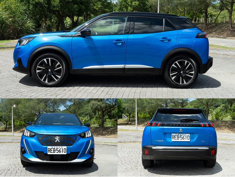 e-2008是採用電動車專用的e-CMP模組化底盤架構,由於模組化的高對應彈性,在搭載電動機的動力系統之下車身尺碼也無須改變,所以與燃油引擎版本同樣是車長:4300mm、車寬:1815mm (後視鏡收折)、車高:1550mm。因為連車身尺碼都沒變,所以外觀造型基本上也是沒有改變。 不過不用擔心,還是可以從幾個外觀小細節上來察覺e-2008與燃油引擎車型的差別。首先是車頭的立體風格水箱罩在引擎車型上是直列式柵條,而e-2008則是橫式,且採車身同色處理。中央的獅子廠徽則沒有做特別處理。而在在車側前葉子鈑上緣車型銘牌上的藍色「e」字樣與車尾以藍色e字樣搭配銀色2008字樣的車型,可以說是最直接的辨識方式。這樣看起來,車廠似乎並不太想在外觀上去做刻意的強調與差異化來凸顯它的純電車屬性。 ![]() ▲水箱罩的立體橫柵條為車色同色處理。![]() ▲前葉子板上車型飾板的藍色「e」字樣昭告電動車身分。![]() ▲雙色五輻雙肋刀鋒造型18吋鋁圈。