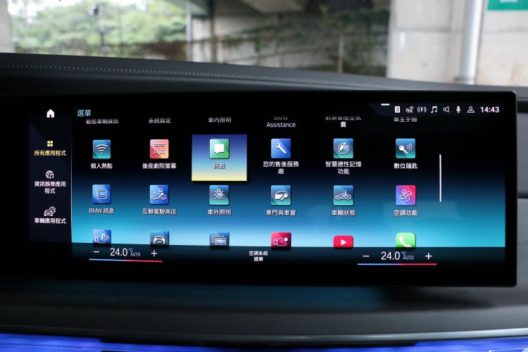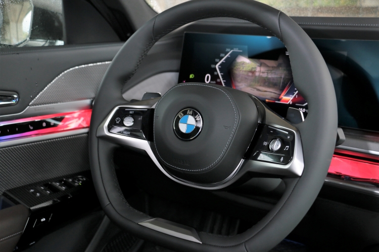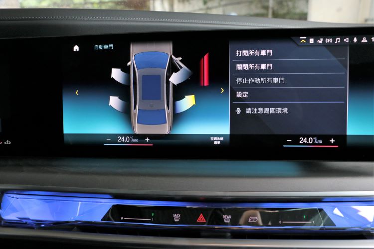 坐上駕駛座,眼前看到的是12.3吋加上14.9吋懸浮式曲面螢幕,這樣的配置式新世代車型上的標準配備,中控台上直接立上大面積螢幕,可以省去設計師的麻煩。眼前的12.3吋螢幕儀表板,可將車前路況投影至螢幕作為AR擴增時竟導航功能,這與之前試駕的iX功能相同。車內的實體按鍵簡化到不能再簡化了,iDrive 8.0系統能透過14.9吋觸控螢幕或者由中央鞍座上旋鈕操作,使用上需要時間適應,畢竟功能太多又隱身在層層的介面之中,就如同剛換上智慧型手機一樣,有一段陣痛期。 ![]() ▲很有復古風格的雙輻式方向盤,左右兩邊實體按鍵被觸控模組給取代。![]() ▲12.3吋螢幕儀表板可將車前路況投影至螢幕作為AR擴增時竟導航功能,這與之前試駕的iX功能相同。![]() ▲iDrive 8.0功能太多又隱身在層層的介面之中,就如同剛換上智慧型手機一樣,有一段陣痛期。![]() ▲SWAROVSKI水晶套件除了iDrive旋鈕、排檔桿外,門板上的座椅調整也換上水晶按鍵。![]() ▲新配備迎賓自動車門,可以控制單一車門或者四個車門同時打開。![]() ▲BMW 740i Excellence標準配備豪華總裁座椅,座椅的椅面、椅背、腿靠都可自行調整。![]() ▲後座車門邊有5.5吋觸控螢幕,可以控制空調、電視、遮陽簾、座椅等。![]() ▲後座31.3吋螢幕支援8K畫質與36具Bowers & Wilkins揚聲器,打造出沉浸式4D頂級音響系統。