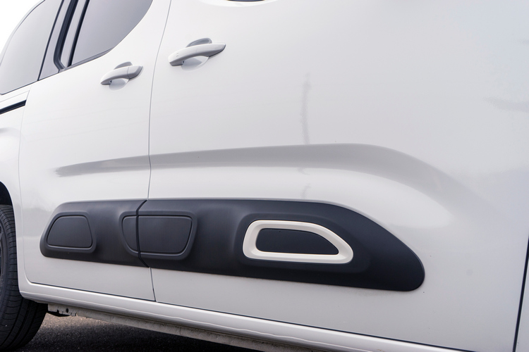 雖然說是以廂型車為底所轉生而成的迷你多功能家庭廂型休旅車,Berlingo在大致方正的外觀輪廓之下車身線條設計卻是非常大膽有創意,一點也不「中規中矩 」,鈑件間的線條都很不規則,車窗輪廓也很跳出一般框架,再加上一些鈑件摺線的勾勒讓它看起來更有意思。短軸車型與標準軸車型之間除了車身長度的差異外外觀完全相同。 ![]() ▲車身各處細節都是直線中帶著圓潤的轉折,沒有一般廂型車那種古板單調味。![]() ▲車側下方用來防止車門開啟時摩擦或碰撞受損的Airbump依舊相當顯眼。![]() ▲左右側後門都是手動式側滑門。![]() ▲車尾比過去多出了一道車頂小尾翼。![]() ▲16吋五輻雙肋黑色鋁圈造型還蠻犀利。