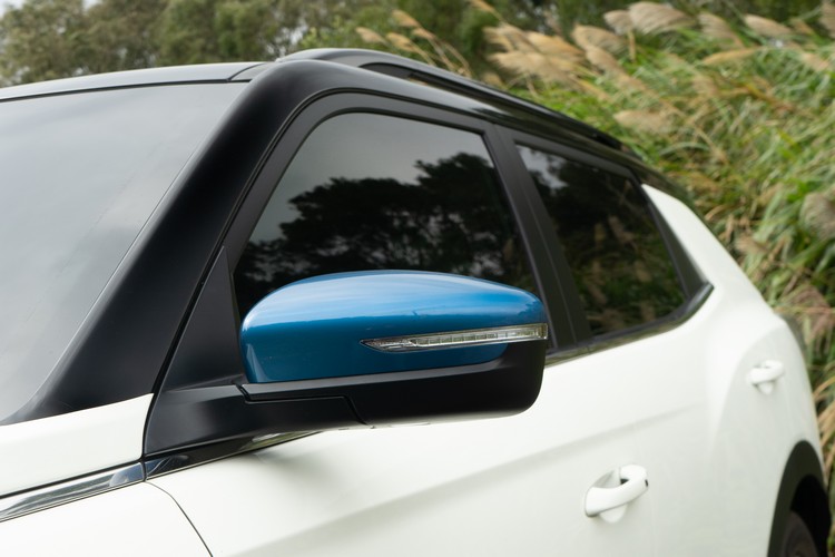 為了強調電動車所象徵的環保概念,在LED頭燈內部飾條、後視鏡燈殼與車尾下護板等處都採藍色塗裝。窗框、車頂架與車頂則採黑色塗裝作為雙色調的車身搭配。