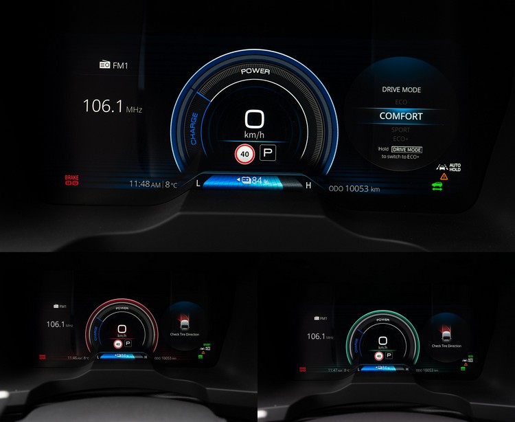 切到Sports模式後加速力道與反應明顯犀利敏銳許多,方向盤轉動手感也會更重手,加速踏板踩稍重些輪胎都還會打滑,迅速而充沛的加速力道讓你很容易有貼背感。駕馭的爽感也只差沒有激昂的引擎聲浪來進一步刺激了。切換至不同駕駛模式時數位儀錶也會跟著變換背景色,讓你目光一瞥就可以直覺地確認目前所切換至的模式。