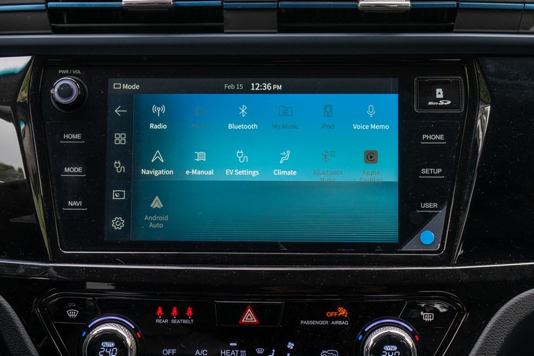 中控台的9吋影音系統螢幕也比汽/柴油旗艦車型的8吋螢幕略大畫面設計也有不同,視覺上沒有那麼複雜擁擠,圖示也比較像智慧手機/平板的風格。AppleCarplay與Android Auto也都支援。值得一提的是,汽/柴油旗艦車型的影音系統是簡體中文介面,而e-Motion車型的9吋螢幕則是英文介面。另外,觸控螢幕的靈敏度並不高,操控時需要稍微出些力去「按壓」。