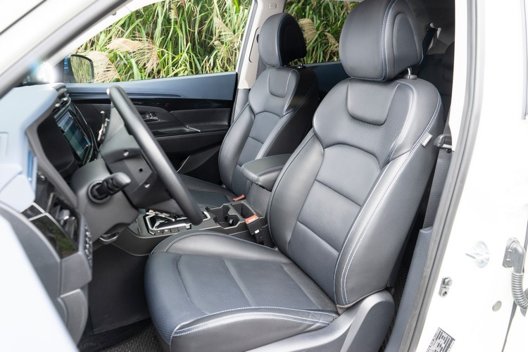 座椅為皮革包覆,雙前座均為八向電動調整並具加熱與通風功能,駕駛座並具四向電動腰靠調整功能。通風的範圍包含了座墊與椅背不是只涼屁股而已。坐墊的支撐感是比較紮實,坐下去後比較不會下沉的類型,且在不同區域分段使用不同類型支撐泡棉下,臀部壓力較為集中之處不會感到死硬所以舒適度還不錯。後排座椅椅背可以做二段式調整(27.5度/32.5度),在正常坐姿外如果想要坐得更放鬆些或是小睡一會兒時就可以把椅背再往後放倒些。
