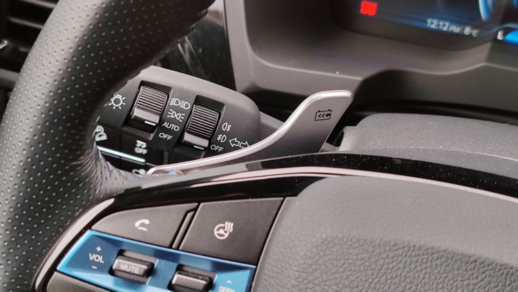 ▲透過方向盤上的撥片可做三段式電能回充調整