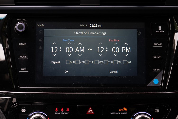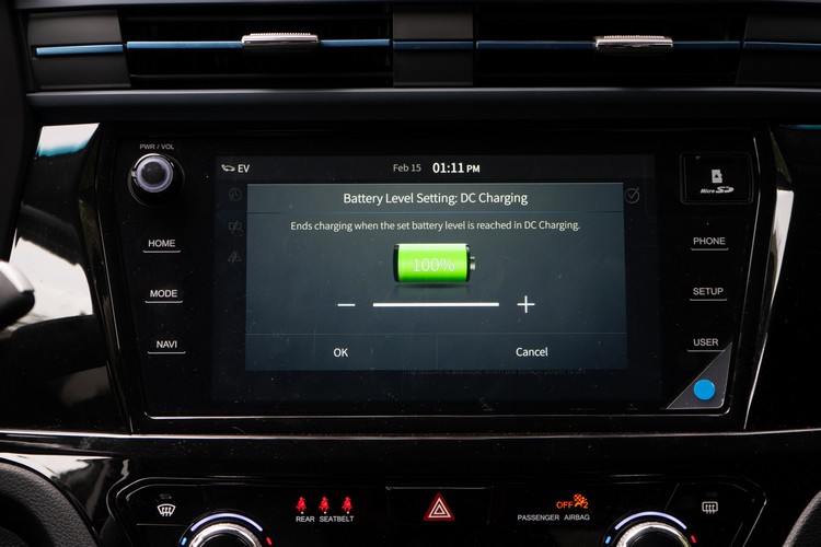 充電時,數位儀錶會顯示目前電量(%)、充電功率、目前續航里程與預估充電完成時間等資訊。依據車主的用車習慣,也可以自行設定DC/AC充電量目標以及預設充電時段。值得一提的是,與目前市面幾款電動車一樣,剛開始發動車輛開車時儀錶板上顯示的剩餘電量%與預估尚可行駛里程數字都是不準的,需要等到行駛了一段時間後所顯示的數據才會趨於正確。