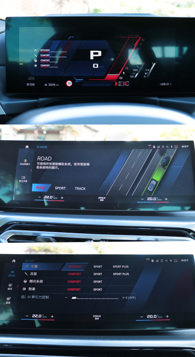 新世代M語彙戰鬥內裝科技轉變帶來全新樣貌內裝氛圍,就連正統M Power車款也無例外,不過M2還是盡可能保留該有的戰鬥氣息。打開車門,首先會看到兩張有M顏色點綴的賽車座椅,包覆性好、重心極低,激烈駕駛時能避免身體晃動。正統M Cars在方向盤上有醒目的M1、M2紅色快捷鍵,駕駛可透過螢幕選項進行設定,除此之外,可針對引擎、底盤、轉向系統、煞車、循跡等分別調整,找到最適合自己的操駕模式。 ![]() ▲科技轉變帶來全新樣貌內裝氛圍,就連正統M Power車款也無例外,不過M2還是盡可能保留該有的戰鬥氣息。![]() ▲正統M Cars在方向盤上有醒目的M1、M2紅色快捷鍵,駕駛可透過螢幕選項進行設定。![]() ▲兩張有M顏色點綴的賽車座椅,包覆性很好、重心極低,激烈駕駛時能避免身體晃動。![]() ▲M專業賽道駕駛及甩尾分析系統,紀錄並分析駕駛的賽道單圈秒數或甩尾數據;M MODE駕馭模式有ROAD、SPORT、TRACK模式,車輛在TRACK模式將暫停顯示駕駛輔助系統相關提醒。![]() ▲由12.3吋虛擬數位儀錶與14.9吋中控觸控螢幕所組成的曲面螢幕,使用全新iDrive 8.0互動介面。![]() ▲車門把手附近有M Power專屬三色標誌,與之前試駕的M240i相同。