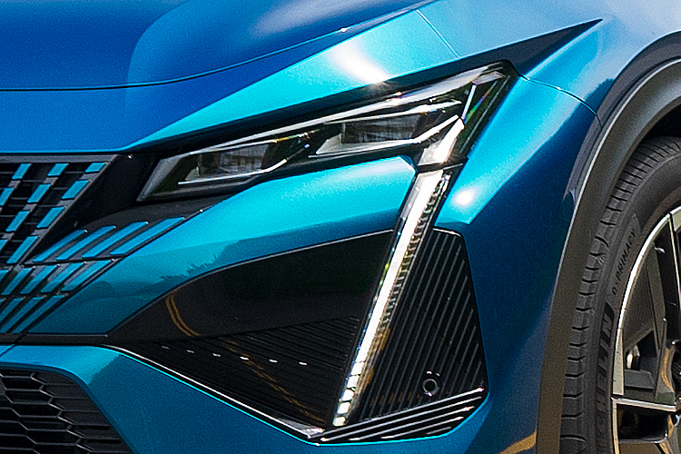 超狂跨界結合 更顯獅族霸氣 撇開這說複雜其實又不複雜的車名問題,408在造型上的視覺吸引力絕對是PEUGEOT設計美學的又一次展現。大膽的表面處理,特別是雕塑般的後輪拱及與尾燈間的融合。讓它的姿態看起來更緊繃、更具肌肉感;C柱上的獅耳造型後擾流翼則有改善氣流導引的效果。 ![]() ▲前車門上也有新的盾型廠徽![]() ▲斜背造型一反408過去的房車印象,獅耳尾翼有實際改善氣流效率的效果![]() ▲放射狀的獅鬃意象水箱罩中央換上品牌新的盾型廠徽![]() ▲LED頭燈眼神頗殺,獠牙日行燈也囂張得很![]() ▲19吋鑽石切削雙色鋁圈![]() ▲尾燈也是三爪造型,車尾具有SUV風格