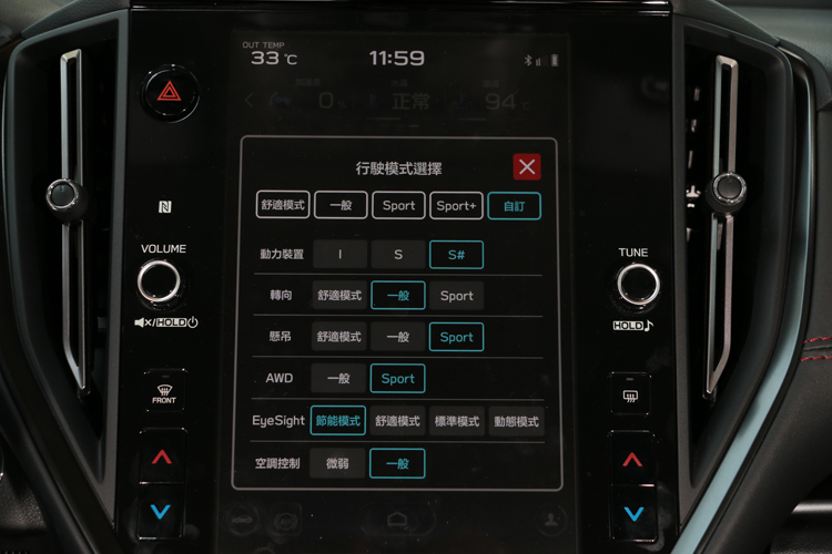 進到車內,布局與現行Subaru車款相差不到,中控台中間11.6吋直立式螢幕相當顯眼,操作起來就像手中iPhone,支援有線Apple CarPlay和Android Auto。控制介面簡化實體按鍵,只保留音量大小、冷氣溫度、車窗除霧等功能按鍵,其餘都是由螢幕觸控。由於導入台灣為tS車型,所以在車內可看到熱血STI標誌,像是方向盤、儀表板上都有;另外,座椅頭枕處繡有WRX字體,這也是早期車型從未看到的裝飾。車內為了要提升運動氣氛,特別用上紅色車縫線以及黑色鋼琴烤漆飾板,加強座艙的熱血氛圍與質感。 ![]() ▲兩者前座都配置跑車化座椅,左邊Sedan頭枕為真皮以及紅色WRX字樣,右邊Wagon頭枕為麂皮以及黑色STI字樣。![]() ▲WRX與WRX Wagon最大差異在於後座空間和行李廂,如果想要後座好座那就要選擇Wagon版本,因為它的椅背可以做角度調整。![]() ▲傳統指針式儀表板,並未進化成數位儀表板,時速表中間可看到STI標誌。![]() ▲EyeSight 4.0智能安全輔助系統偵測系統就安裝前擋風玻璃上,面積相當大稍微影響到整體視野。![]() ▲WRX Sedan車型有配置高檔h/K揚聲器,且高達11支喇叭,反之Wagon則沒有,喇叭數也只有6支。![]() ▲後行李廂空間Sedan版本只有411公升,Wagon版本最小492公升,如果椅背傾倒後則可以有1,430公升置物容積。![]() ▲ACC主動車距控制定速巡航系統、LCF車道維持置中系統,在高速公路上巡航相當好用,可減輕駕駛者壓力。![]() ▲我只能說新世代的WRX更走向家庭用車,有點像似男孩蛻變成為男人,變得穩重可值得託付終身的一輛車。![]() ▲Wagon版本支援免觸控電動尾門開啟方式,只要用手肘在Logo處感應便可輕鬆開啟後行李廂尾門。![]() ▲鮮少出現在新車配備的CD換片箱,居然在WRX上看得到。