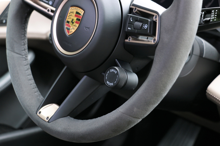 有著跑車性能的Taycan GTS電動車,外觀保留四門的便利性,無框窗設計車門結構,還是符合跑車該有的帥氣度。車身四周沒有誇張的空氣力學套件,套件本身已與車身鈑件融合,低調中卻得到跑車該有的風阻係數。試駕車外觀只選配了21吋Mission E Design鋁圈和白色塗層煞車卡鉗,總共花費約30萬元左右。 ![]() ▲標準配備Race-Tex麂皮材質與髮絲紋鋁合金飾板點綴,加重車內整體運動氛圍。![]() ▲Porsche近期經典的方向盤行車模式控制旋鈕,Taycan GTS提供五種模式。![]() ▲虛擬數位儀表板有多種畫面可切換,可依照駕駛習慣來更換顯示項目。![]() ▲乘客座前方的資訊娛樂顯示幕為選配項目,配備價格65,200元。![]() ▲車輛懸吊、車高或者大燈等控制按鍵,則是放置在儀表板左右兩側最就手處。![]() ▲排檔撥桿被放在儀表板旁邊,比起實體排檔桿少了點運動氣息。![]() ▲ Taycan眾多車型中,整體最均衡、最有樂趣的非Taycan GTS莫屬,台灣販售起標價格為605萬元起。