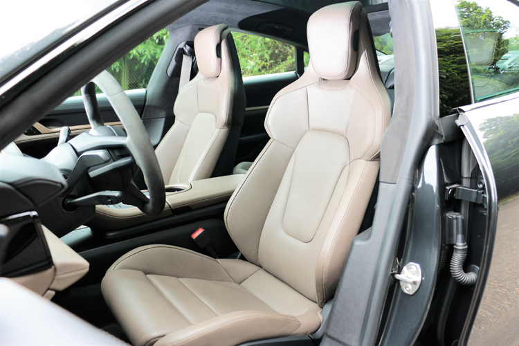 標榜駕樂趣的Taycan GTS,標準配備主動氣壓懸吊PASM及扭力分導系統PTV Plus,是駕駛者在山路上的過彎利器,透過系統輔助後,可提高過彎極限與穩定性,讓這輛車重接近2.3噸的電動車短暫忘記自身體重,輕盈的在彎道間跳舞。另外,試駕車款選配後輪轉向系統,削減軸距達到2,900mm尺寸的遲鈍感,碰到刁鑽的小彎,後輪轉向輔佐車尾,前輪舵角不用太大,便可以輕鬆通過。 ![]() ▲Porsche Taycan絕對是最接近跑車的純電車,開習慣大馬力內燃機跑車後,晉升成為電動車車主,Taycan GTS絕對是首選。![]() ▲雙前座十八向電動調整跑車化座椅數標準配備,如果要通風、加熱等,就必須額外加價選配。![]() ▲座椅配置採2+2設計,後座中間的座位被置物空間給取代。