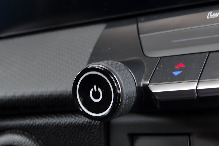 方向盤為平底設計,功能按鍵和中央廠徽都採用了亮黑飾板的材質,並且配置了換檔撥片。至於中央螢幕的尺寸同樣是10吋,並且微微傾向駕駛側,可連結智慧手機語音聲控,支援無線 Apple Carplay 與無線 Android Auto,功能選單直覺而容易上手。螢幕下方中控台保留不少實體按鍵,包括音響和空調面板,雖然旋鈕設計略嫌陽春,按鈕也欠缺能夠提升質感的裝飾細節,但至少不需要透過螢幕進入選單就能直接操作。