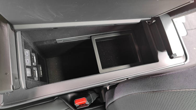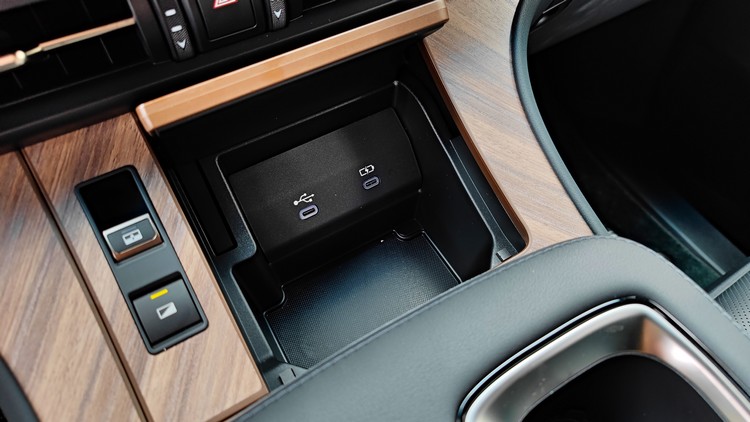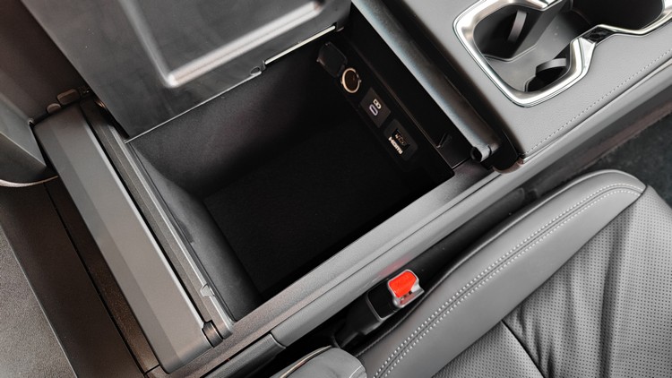 ▲前座中央的置物盒形狀也是大而方正,並提供12V電源插座、USB-C插孔與HDMI插孔