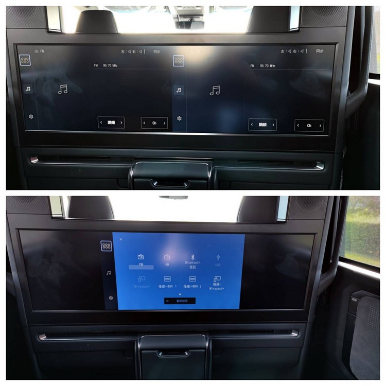 ▲後座隔屏上的48吋螢幕除了全螢幕顯示外,也可以切換成雙24吋或單24吋畫面顯示