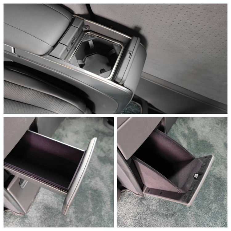 ▲後座中央下方有兩個收納空間,座椅旁也有置杯座