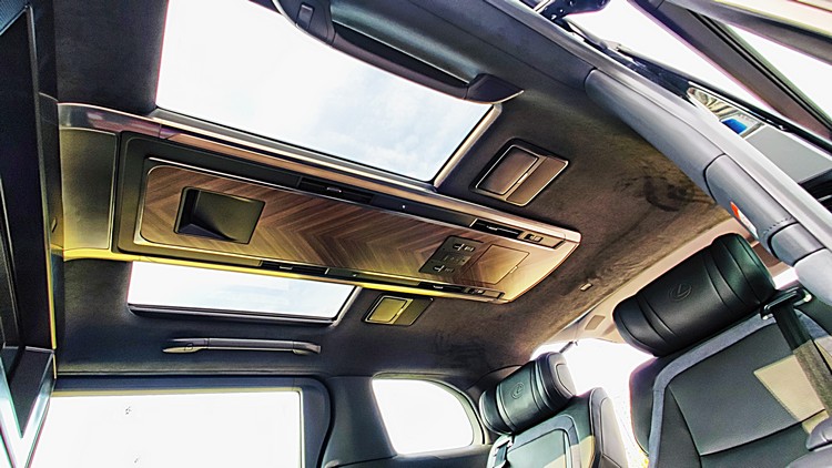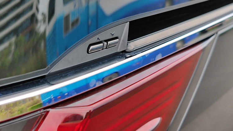 車側下方的登車踏板會隨著開關車門而連動,方便乘員上下車。車尾的LED尾燈雖然「又是跟著潮流」採水平貫穿車尾設計,但至少是配合了從車側延伸而來的線條而帶有「ㄩ」字形的形狀,顯得較有設計感。此外,不管是車窗採用降噪隔音玻璃或車身四周下緣的鍍鉻圍繞,這些細節的注重也都彰顯其豪華屬性。