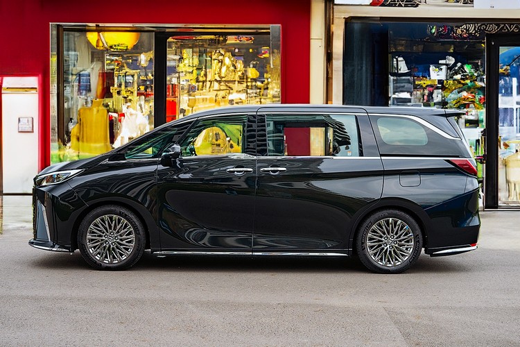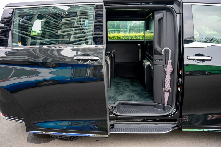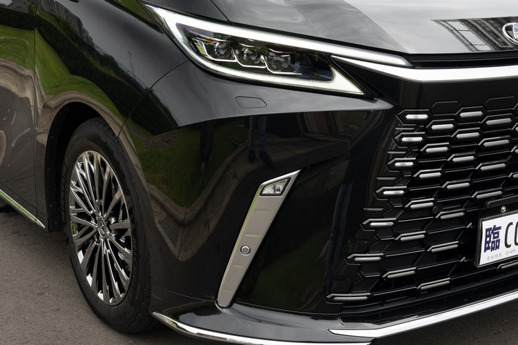 就跟剛導入國內的四代Alphard一樣,新LM車頭的紡錘式水箱罩現在也改為無框設計與車頭融合在一起,也構成LEXUS家族新世代Spindle Body的一部分。從水箱罩的邊緣輪廓一直延伸到車側鈑件上的摺線起伏都可以看到紡槌造型線條,如果仔細比較的話還會發現兩車鈑件起伏彎繞的方向剛好相反讓兩車留下了一點「血緣聯繫」。三眼式LED頭燈上緣與水箱罩上緣的水平橫貫線條也是讓車頭更有型的視覺元素。