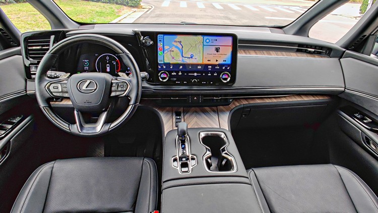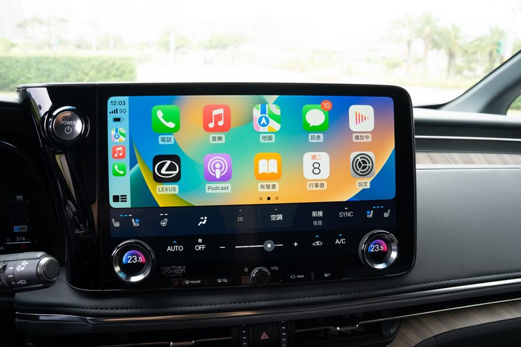 中控台上的14吋螢幕跟Alphard所配的那一套高度相似,都在畫面下緣配置經常會去調整的空調系統功能,也都支援AppleCarPlay(無線/有線)與Android Auto(有線)功能,內建原廠導航系統。