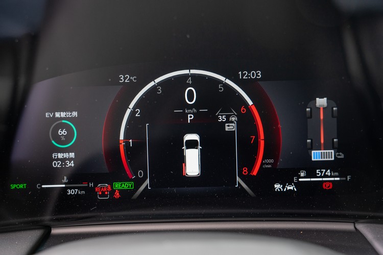 ▲所配備的液晶儀錶維持單環式設計,左側還有EV駕駛時間比例顯示