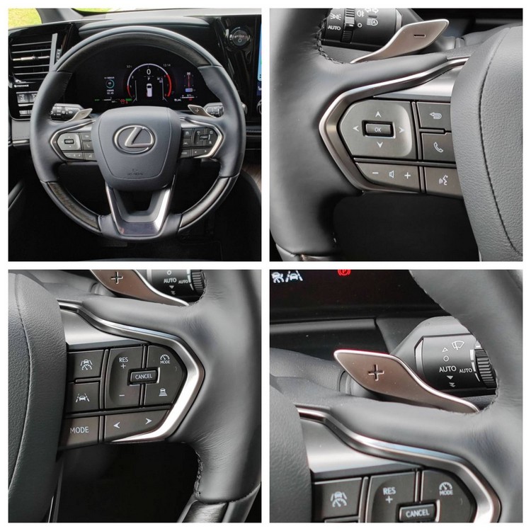 ▲方向盤左側按鈕控制音響、通訊與資訊顯示,右側控制定速與相關輔助系統,也提供換檔撥片