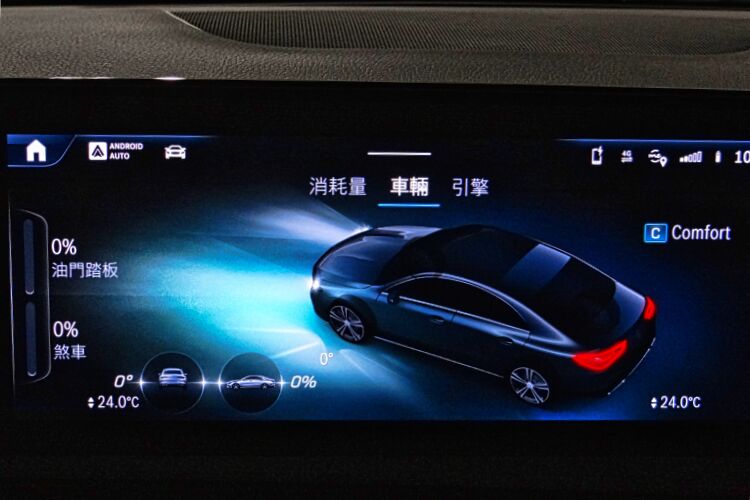 車內整合10.25吋數位儀表與10.25吋觸控螢幕,原本就為CLA帶來濃厚科技化的車室氛圍,如今內建的MBUX 2.0多媒體系統終於將眾所期待的無線Apple CarPlay與無線Android Auto連結功能導入,畫面還能夠以滿版顯示在螢幕上,這些新功能對於用車的便利性都算是有感的升級。另外,系統還加入OTA線上更新功能,在特殊節日會出現彩蛋圖像動畫,沒什麼實際作用,卻能為用車生活增添一點小趣味。