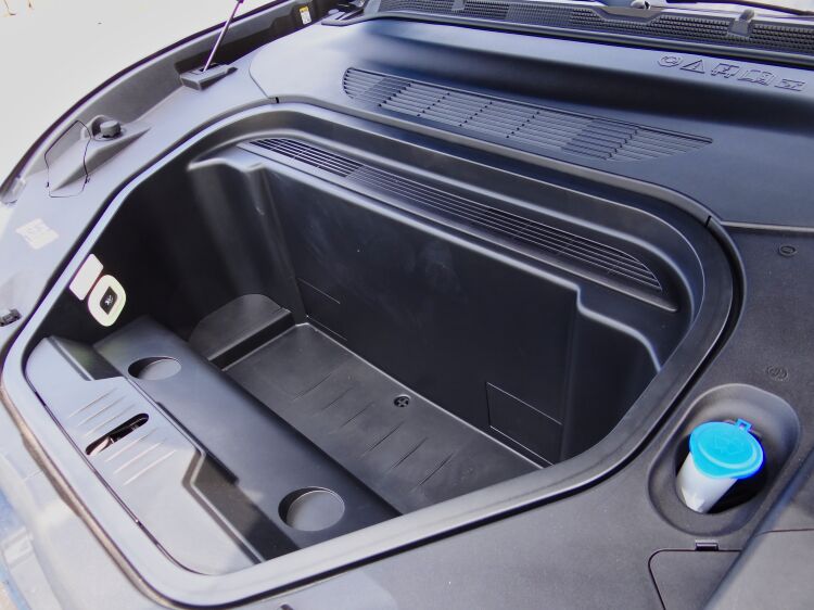 中央扶手下方的容量也不小,行李廂底板下方同樣也有隱藏空間,搭配後座椅背傾倒功能,載物容量可以擴增到1420L。車頭前行李廂另有100L的置物空間,或許裝不了什麼大型物品,不過因為是塑膠外殼加上又有排水孔,反而很適合把一些潛水衣物或容易弄髒車子的裝備丟進去。