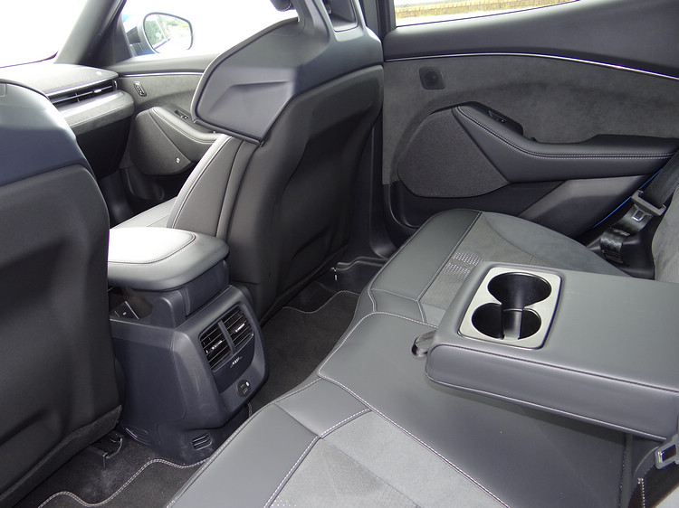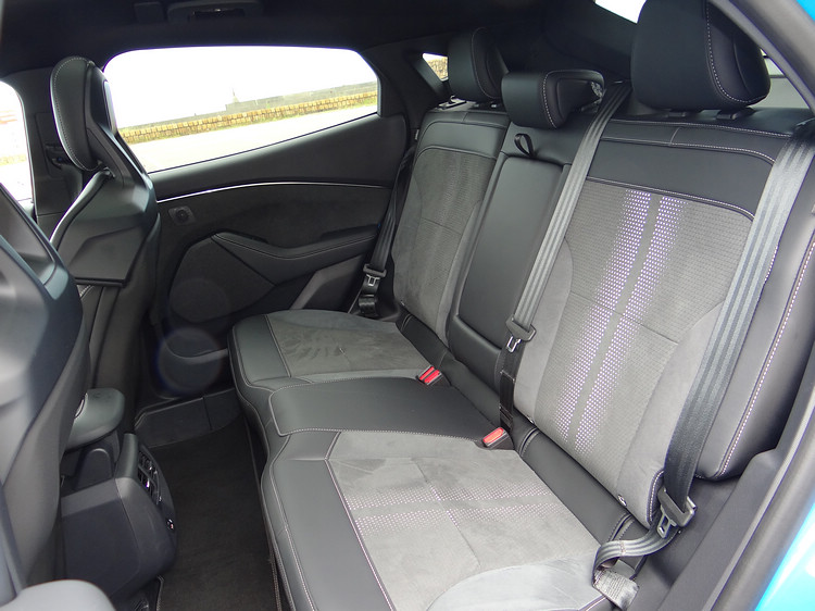在座椅配置上,GT車型前座標配的是Ford Performance跑車座椅,分體式椅背及加大包覆的造型相當特別,而且有8向電動調整、加熱和駕駛座記憶功能。全景玻璃車窗也是全車系的標準配備,涵蓋的範圍擴及前後排,創造出無比明亮的車室空間,雖然沒有隔網或隔板,玻璃上的隔熱塗層似乎效果還不錯,個人沒有感覺明顯的曝曬感。