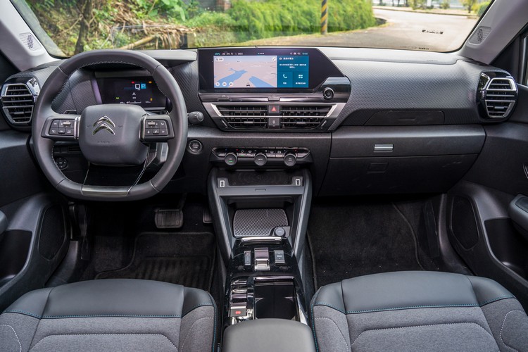 所搭載的魔毯液壓懸吊系統在避震器上下兩端各增加一個漸進式的液壓緩衝器,可根據路面狀況調整避震器阻尼(的軟硬程度),在比較平整或輕微顛簸路況下切換至低阻尼工作區間來抑制吸收這些小碎震,而在經過大坑洞、高低差路面、壓過大石塊等劇烈顛簸路況時,則增大阻尼來吸收從地面傳至車內的剛性衝擊感。這套系統相信熟CITROEN的人應該都很熟,雖不敢說可與一些兩三百萬以上強調舒適表現的豪華車款完全媲美,但至少在行車過程中確實也不太容易經歷到什麼突兀的震動或不舒適感,在水準之中的隔音表現也是如此。