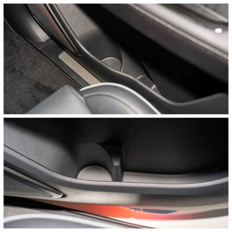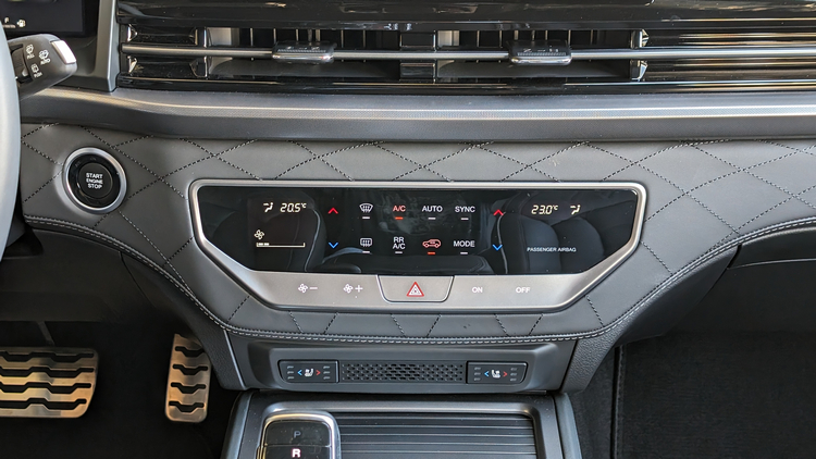 過去舊(2023)年式車款的前方控台設計比較傳統,由中控螢幕、實體按鍵空調節面與直立空調出風口所構成的中控台為中心採取兩側對稱的設計。這次導入的新年式車型則是以水平的空調出風口與氣氛照明為中心向副手座方向水平延伸,下方的空調出風口則改為觸控介面,又多增了一些類似都會SUV的氣息(讓人聯想到CR-V的控台就是類似設計)。