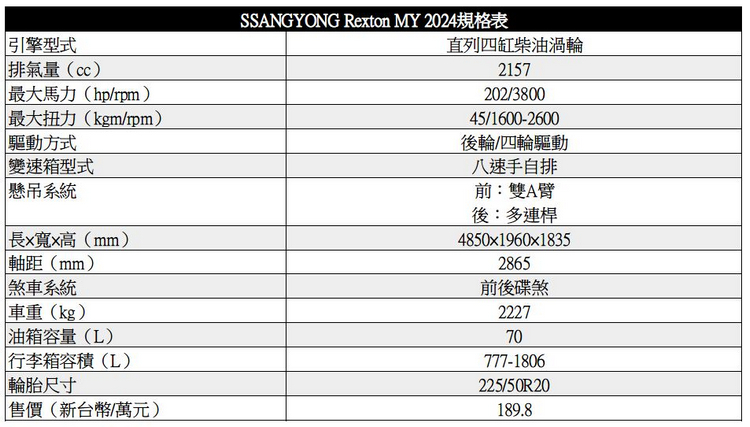 雖然隔了幾年,五代Rexton才有點姍姍來遲,不過很高興這最新年式車款在內外裝配備上越來越跟得上現在的時代潮流,在質感處理上也算有用心,配得上中大型豪華休旅的產品定位。 而其越野車分離式底盤結構與電子加力箱的配置等等越野底子也都延續下來,而不是直接轉型去走「On Road」派SUV,這讓國內對於有從事越野休閒活動有需求的買家來說,沒有失去這個二百萬價位內兼具越野能力與豪華乘坐感的選擇,也是與接近價位或車身尺碼的車款相較之下它最主要的亮點。