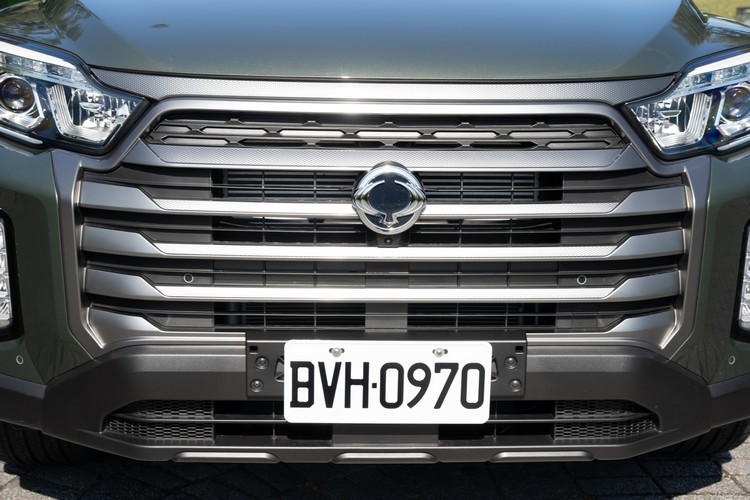 五代Rexton Sports渾身飽滿的肌肉線條與立體的引擎蓋折線展現出越野皮卡應有的陽剛動感身形。車頭以多條鍍鉻橫柵所構成的水箱罩幾乎佔滿整個前臉面積,簡單而粗暴。燈組則是包含了HID頭燈(考量到亮度與耐用性而不用LED)與LED日行燈、LED日行燈。腳上則從原本的18吋鋁圈升級改配20吋旋刃造型鋁圈。