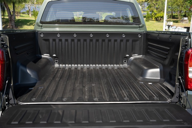 尾門下有個伸縮式的踏板方便車主進入貨斗。貨斗長/寬/高為1300mm/1570mm/570mm,內部空間達1011公斤,最高承重455公斤,貨斗內配置耐磨的材質,防止刮傷、進沙、進水。在四個角落都有固定扣環方便使用固定繩固定所裝載的物品。貨斗的結構採用高強度鋼材,且表面施予鍍鋅處理增強防鏽能力。