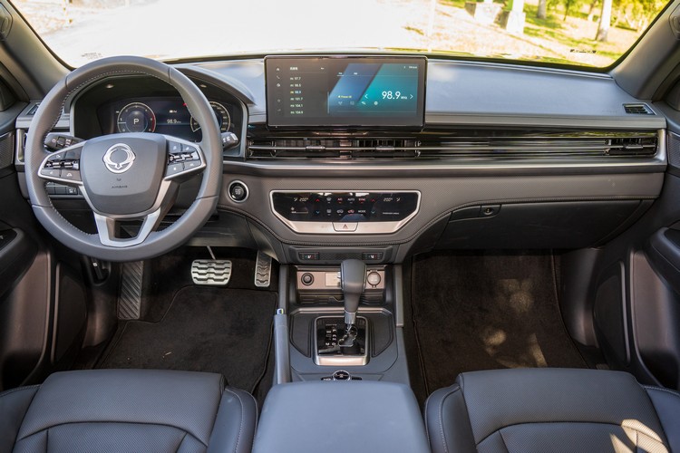 車內的控台介面與Rexton大致相同,例如方向盤前方的12.3吋全彩數位液晶儀錶板與中控台上的12.3吋影音主機觸控螢幕都是採用相同機型。中控螢幕上面的簡中介面將「空調」功能寫成「天氣」令人莞爾,螢幕的反光也對閱讀有些影響,不過多模式(包含透視車身僅顯示車輪位置模式)的3D環景顯影功能則是相當好用的功能,特別是對於從事越野活動時對於車身判位有很大幫助。