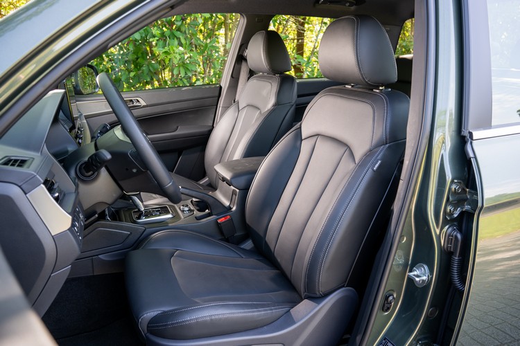 所配的座椅強調內部填充材質是由多種不同硬度材質組合而成,讓身體不同位置得到最適當的支撐或是柔軟舒適感。在調整功能上,駕駛座具8向電動調整功能與2向電動腰靠調整,副手座則有6向電動調整功能。雙前座都有3段電熱與通風功能,第二排座椅則有2段電熱功能。至於空間部分,以165公分身高乘客來說,前、後排座椅的頭部空間分別約為2個與1個拳頭距離,前座調整到適當駕姿之下,後排座椅的膝部空間約為2個拳頭距離。