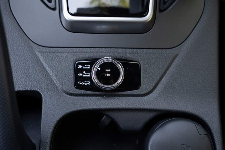 系統提供Eco省油、Power動力與Winter冬季三種駕駛模式,平常是以Eco模式行駛為主,Power模式下動力輸出的積極性會增加一些但不顯暴力,讓車主有多幾分的運動化駕駛體驗。當然,對大部分車主來說,攸關越野表現的旋鈕式電子加力箱更是重點,Rexton Sports與Rexton相同,提供2H、4H、4L三種模式。2H模式下為後輪驅動,適用於一般道路行駛;4H模式為前後扭力50/50的四輪驅動,主要適用於雪低、潮濕路面的些不良狀況路面避免車子打滑;4L模式為前後扭力50/50的四輪驅動,能夠提供最大的扭力輸出從越野地形下脫困或是提供拖曳時所需的動能(最大拖曳重量3噸)。後軸配備機械式差速器鎖定系統,當兩側其中一輪打滑時,就會透過差速器鎖定強制將扭力傳輸至尚有抓地力的另一輪,讓車子得以脫困,爬坡能力也會強上許多(原廠稱可對應14.7度斜坡)。