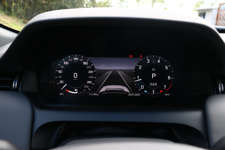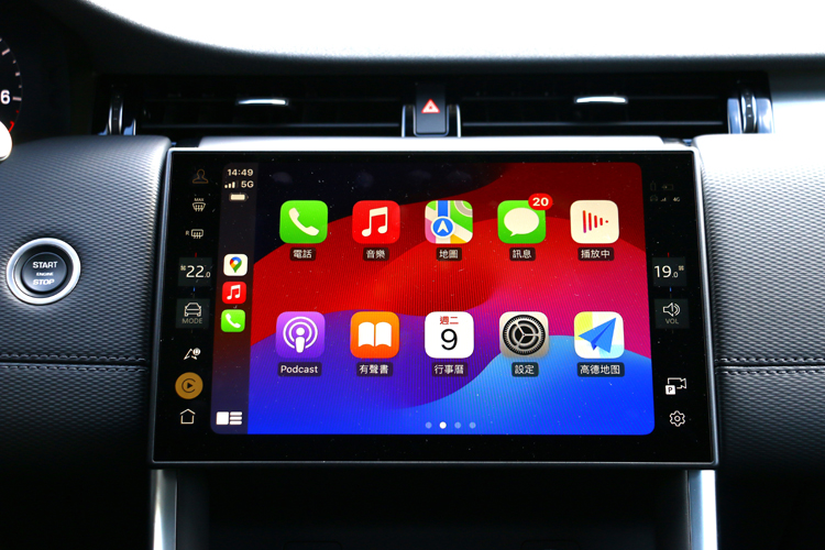 新年市的JLR旗下眾車款,將朝著化繁為簡大方向,簡化中控台和中央鞍座上的實體按鍵,冷氣、音響、越野模式等操作都由11.4吋觸控螢幕來控制,使用上沒有太大問題,只是要時間適應,熟悉想要的控制選項在哪個視窗模式下。中央鞍座沒有任何實體按鍵,只有一個小巧可的排檔桿豎立於中間;前方有無線充電座和置物空間,後方則是雙置杯架。除此之外,ClearSight電子車內後視鏡、對地視野功能、環景功能都被列為標準配備,讓消費者感受到滿滿科技配備之便利。