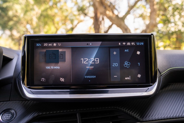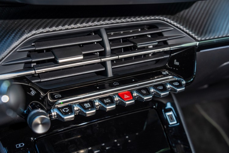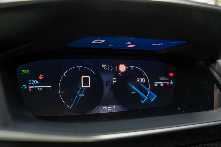 中控台升級10吋觸控螢幕多媒體系統坐進車內,再次見到頗有飛行器駕駛艙戰鬥感的i-COCKPIT駕駛導向座艙。整個駕駛介面相對於駕駛者視線水平是在比較低的位置所以給予駕駛者很好掌握前方路況的視野,小盤徑的GT皮革包覆多功能方向盤符合人體工學好握也好轉動操作。3D QUARTZ 立體投影式抬頭顯示儀錶板在這次改款換上了新的圖形呈現設計,多了幾分科技感,而且儀錶指針處還加入類似指針快速移動時所產生的殘影效果,也增添了運動化的氣氛(很多媒體的試車照片就喜歡刻意拍有指針移動殘影的儀錶)。