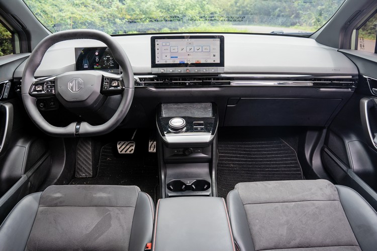 車內控台是非常簡單的水平基調造型,操作介面集中在7吋數位儀錶與10.25吋中控台觸控螢幕,實體按鍵數量不多。數位儀錶的圖形設計與EV旗艦版完全相同,沒有像一些性能車會額外提供一些跟運動操駕甚至是賽道走行的資訊,不過這並非MG4對產品定位的設定,相信買家也不會在意。