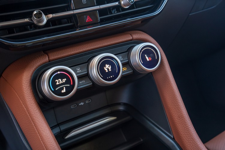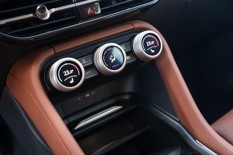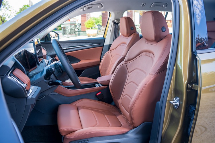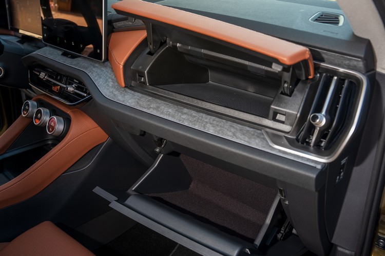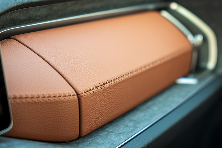 車室內以酒棕紅搭配黑色調,前方控台的造型複雜而有立體感,比上代更有高級車的架勢,除了皮革包覆外,控台與車門使用了天鵝絨灰飾板來搭配氣氛燈光條,有著與塑料或皮革等材質相異其趣的質感呈現,可永續再生環保材質的擴大使用也是品牌未來產品的方針。