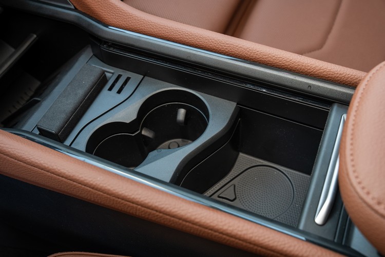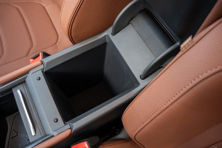 ![]() ▲上下雙層式手套箱提供更多收納空間![]() ▲副手座前方包覆的皮革材質採取X形滾邊縫線處理,並搭配天鵝絨灰飾板彰顯內斂高雅![]() ▲中控台的置物格有可提供兩部智慧手機15W感應充電的無線充電板![]() ▲前座周邊的置物收納與飲料收納空間都很充實