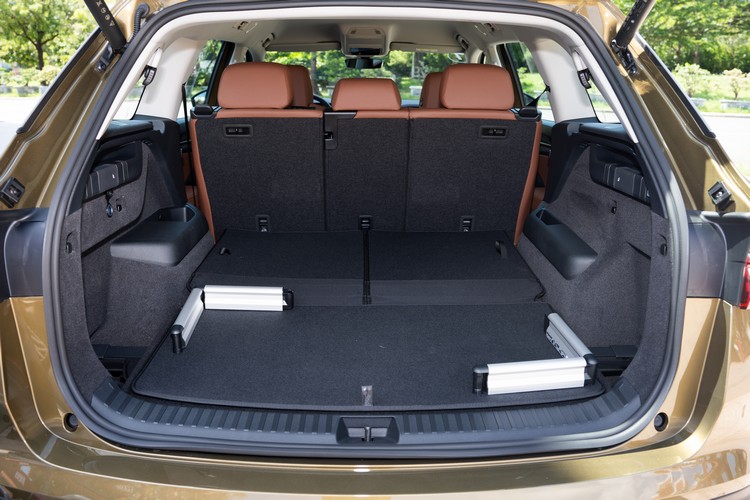 ![]() ▲後座椅背角度略嫌直了些,但頭、腿活動空間則屬充裕![]() ▲二排座椅也是可以好好放進一般中等容量的飲料瓶![]() ▲二排空調出風口與調整介面下方有2個USB-C與1個12V電源插孔![]() ▲第三排座椅算是「+2」型,主要適合讓孩童乘坐![]() ▲行李廂標準容量281公升,放倒第二排椅背後為786公升,放倒第二三排椅背後為2035公升,還提供可靈活調整的固定架來幫助固定行李