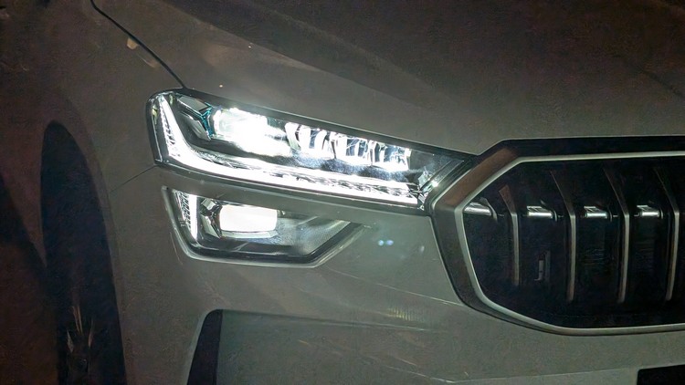 ![]() ▲頭燈組中上面那顆是遠/近光燈,下方是矩陣燈組車尾在C字形水平貫穿尾燈的帶領下一道一道的水平摺線帶來不少立體與層次感。品牌「SKODA」字樣也同樣霧鉻銀版本,事實上,車上許多原本傳統上愛用鍍鉻的外裝飾件都改採用霧鉻銀處理,看起來有質感也每有繡班之類的問題。此外,後行李廂也比上代更寬、更大且高度更低,取放行李更方便。 ![]() ▲C字形尾燈有著火焰紋的烘托看起來更漂亮![]() ▲18吋雙色五輻雙肋刀鋒造型鋁圈