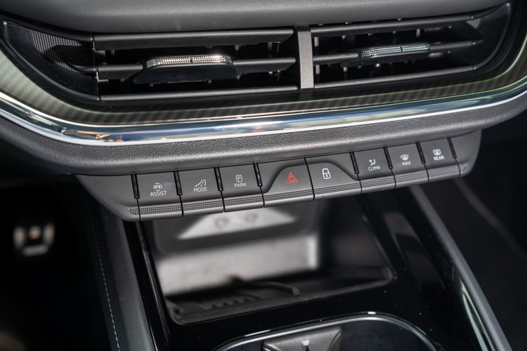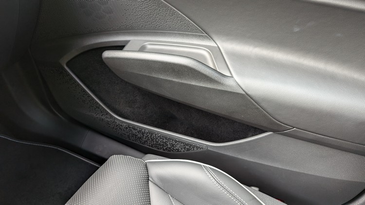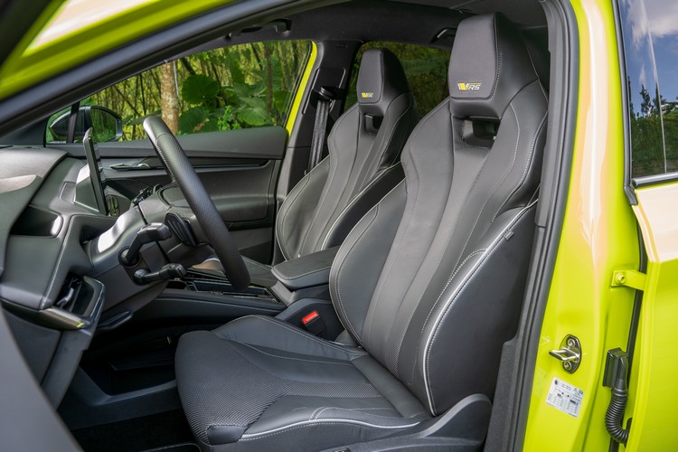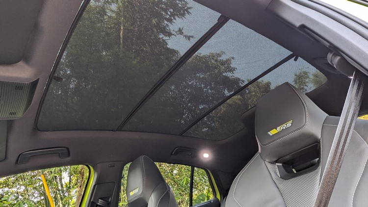 延續這樣的運動化氛圍,車室採黑色調內裝與頂篷。前方控台為三層設計,最下層與車門內側使用碳纖飾板。駕駛座前方的RS專屬三輻平把真皮多功能方向盤與一般式樣差不多,主要差別在專屬灰色縫線與下方的RS徽飾。