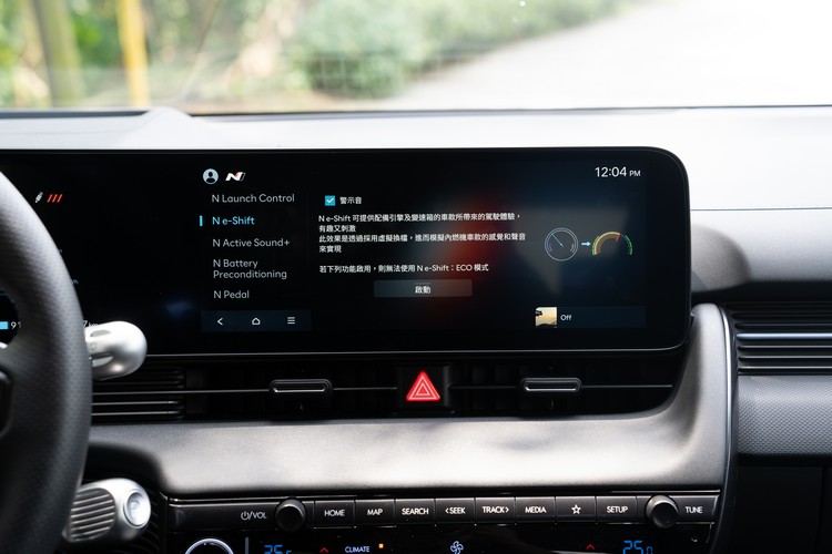 ![]() ▲N性能多功能方向盤上可直接切換駕駛模式,右上方有N Grin Boost超增壓模式啟動鈕,下方兩個自訂按鈕則可以設定啟動N e-Shift功能或是N自訂設定組合![]() ▲平視投影顯示器也會在不同模式下呈現不同畫面![]() ▲前排中央固定式中央鞍座上有3個USB-C插孔+1個12V電源插孔,也有手機無線充電板![]() ▲N Alcantara輕量化跑車座椅有預留四點或六點式安全帶安裝孔![]() ▲ 中央鞍座下方的置物盒中有兩格按壓彈出式置杯架![]() ▲前排中央扶手下方也有空間方正的置物空間![]() ▲12.3吋數位儀錶顯示幕提供比一般更為細節的車輛資訊![]() ▲12.3吋中控螢幕以整齊明瞭的畫面方便車主閱讀與操作