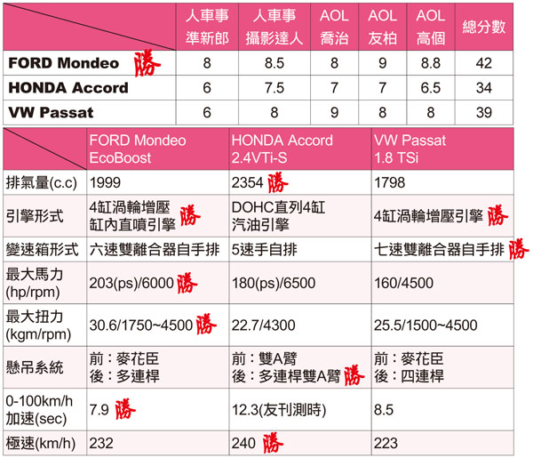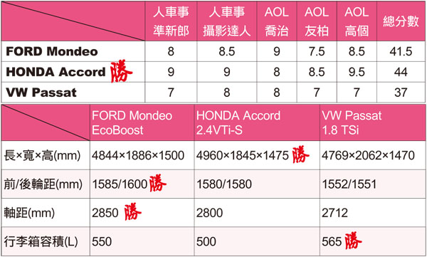 這次汽車線上拋開門戶的與人車事汽車網站一同合作來完成這篇中大型房車的評比對決。全新VW Passat以119.8萬元超低價格試圖來打亂中大型房車市場,用國產車的價格進口車的品牌強佔市佔率,所以這次評比特別選了另兩款中大型房車FORD Mondeo跟HONDA Accord,看看究竟是要選擇入門進口車還是頂級國產車,也藉機導正台灣消費者對進口品牌的迷失。