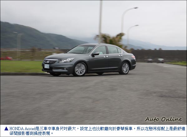 內裝配備質感我最豪華 運動豪華難取捨![]() 三部車中進入座艙第一眼感覺最豪華的是Accord,在這項目中名正言順得到最高分數41分,編輯們都認為Accord體質方向比較接近豪華房車,所以在內裝用料及配備在合理的成本範圍下用盡心力,就是讓消費者可以感受到Accord可以媲美高級豪華房車。層次分明的設計概念也是HONDA最具特設內裝設計之一,充滿舒適風雅的內裝質感也是三車中最佳,不論是在視覺或者觸覺上都是最好表現。電動座椅、後窗遮陽簾、音響快撥鍵、核桃木飾板這類豪華房車上才會出現的配備Accord都有,唯一缺點是沒有配置先進的多媒體整合系統,冷氣空調、音響按鍵太過複雜,駕駛者需要一點時間適應。