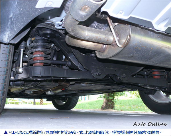 前文有提及XC60擁有雙門跑車化的線條設計,在動力足以搭配下,底盤懸吊的表現,便成了XC60能否成功成為動感SUV的主要關鍵。VOLVO為XC60重新調校了兼具跑車性格的底盤,並以均衡操控的訴求,提供乘員快速移動的乘坐舒適性。